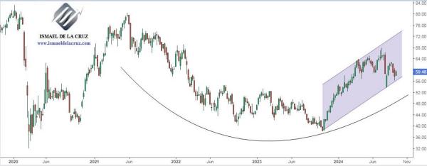 Atendiendo al precio objetivo por fundamentales (68,75 dólares), sus acciones cotizan un 15% por debajo. El mercado le asigna un potencial a los 70-72 dólares.