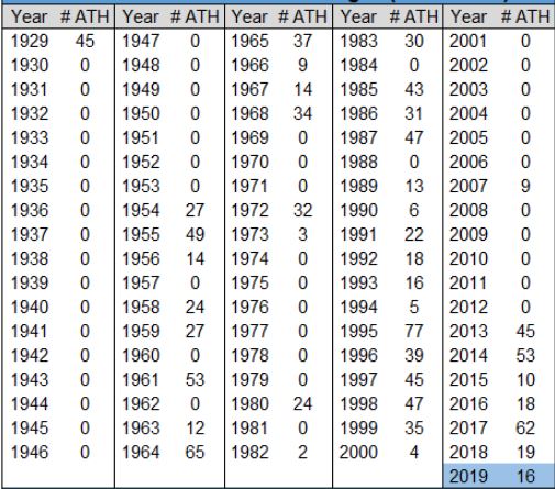 – Los años que el índice S%P500 marcó más máximos históricos fueron en 1995, 2017, 1961 y en 2014. El S&P 500 Total Returns de 1928 a 2019 tuvo como mejores años: 1954 (52,6%) y 1933 (50%). Los peores años fueron 1931 (-43,8%) y 2008 (-37%). En total 67 años en verde y 25 años en rojo. Aquí pueden ver su historial desde el año 1.929.