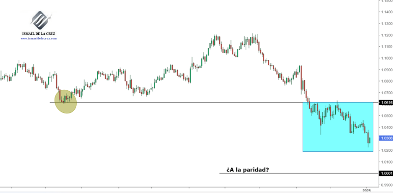 Todo esto implica que el euro está cayendo al nivel más bajo frente al billete verde en más de dos años. Desde finales del 2022 no estaba tan cerca de la paridad.
