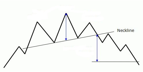 Si trazamos una línea que una los suelos o mínimos de la figura, obtendremos lo que se denomina neckline o línea clavicular y cuando el precio pierde esta zona se activará oficialmente la señal de giro o cambio de tendencia y se habrá activado la señal de venta y de caída.