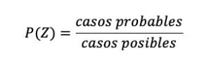 Llevando ésto a la fórmula matemática tendríamos: casos probables / casos posibles = 1 / 4 = 0,25.