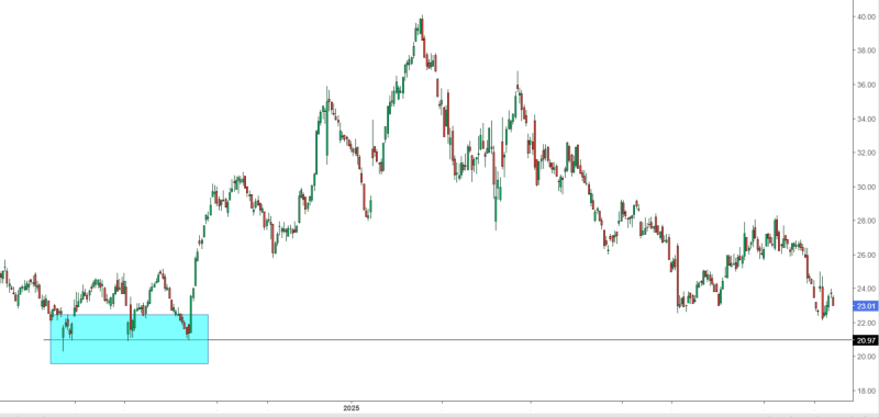 Idea operativa: el Black Friday podría actuar como catalizador para un cambio de tendencia, cualquier señal de mejora en el volumen de pedidos o de recuperación de márgenes podría impulsar un repunte a corto plazo tras varios trimestres de caída. Buscaría un rebote al alza si bajase a 21,15 euros para intentar coger un 3% como primer objetivo. Pero hay que calificarla de alto riesgo.