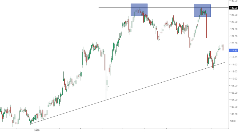 Idea operativa: como inversión no la veo aun atractiva, pero en cambio, hay una zona en 113,05 euros que podría ser válida para buscar un rebote al alza con un primer objetivo de un 2-3%.