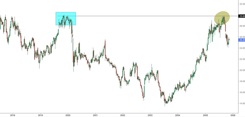 Precio objetivo promedio otorgado por el consenso del mercado: 30,61 dólares
