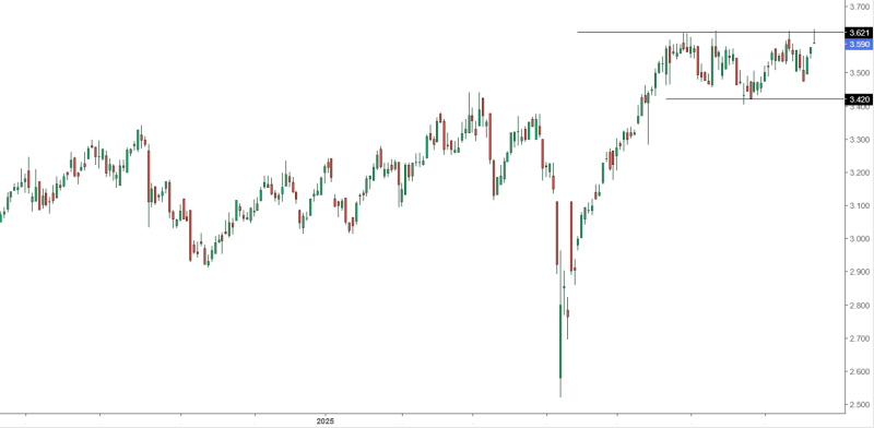 * En el Viejo Continente: el BCE se reúne el jueves y los mercados no esperan cambios en las tasas de interés después de ocho recortes consecutivos. El BCE había señalado previamente una pausa en su ciclo de flexibilización, ya que la inflación de la zona euro volvió al objetivo del 2% en junio. Mientras tanto, se publicarán los PMI de la zona del euro, Alemania, Francia y el Reino Unido, y se esperan modestas mejoras tanto en el sector manufacturero como en el de servicios. En Alemania, se prevé un aumento de la confianza de los consumidores y las empresas, con el GfK Consumer Climate en su nivel más alto de nueve meses y el Ifo Business Climate en su nivel más fuerte desde mayo de 2023. También se espera que la confianza del consumidor de la zona del euro y la confianza empresarial de Francia mejoren.