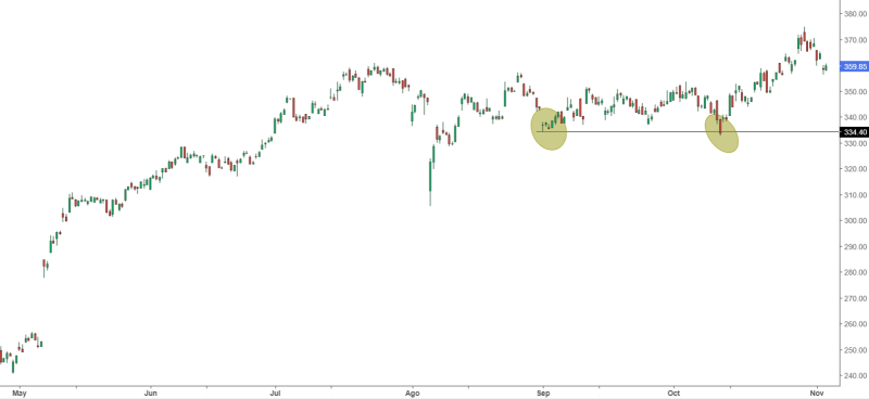 Idea operativa: como inversión para medio o largo plazo no entraría ya que está cara. Pero para una operación de corto plazo podría ser interesante buscar rebote al alza en el nivel de 333,75- 334,45 para buscar un primer objetivo de un 3%.